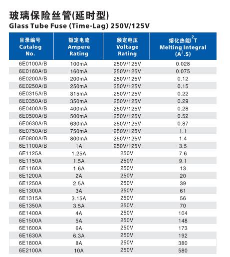 產(chǎn)品名稱: 6E Φ6.35×32 玻璃慢斷保險絲