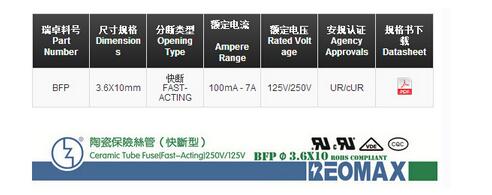 產(chǎn)品名稱: BFP 3.6*10陶瓷保險絲