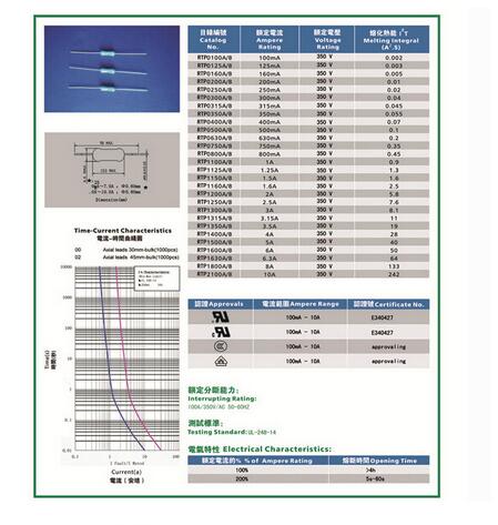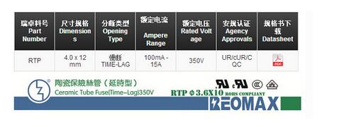 產(chǎn)品名稱: 電阻式保險絲RTP 4.0*12mm 350V 環(huán)氧涂層(延時型)