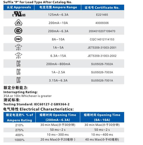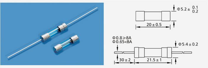 產(chǎn)品名稱: 5J Φ5.2×20 玻璃快斷保險絲 多國認證