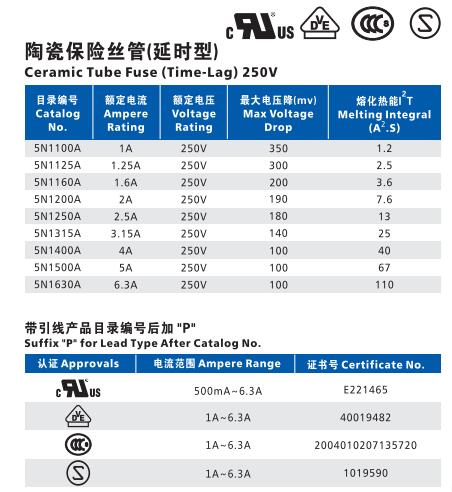 產(chǎn)品名稱: 5N Φ5.2×20 高分斷陶瓷慢斷保險絲