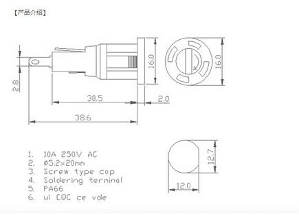 產(chǎn)品名稱: H3-54B(面板安裝) 保險(xiǎn)絲座(引線式)|汽車保險(xiǎn)絲座H(引線式)|保險(xiǎn)絲盒(引線式)