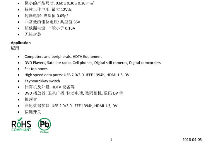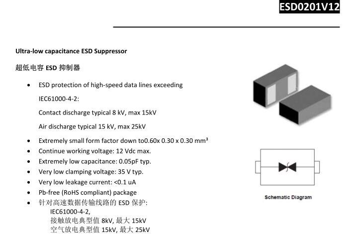 簡(jiǎn)述: ESD suppressor with Polyimide package. 0201 chip size.