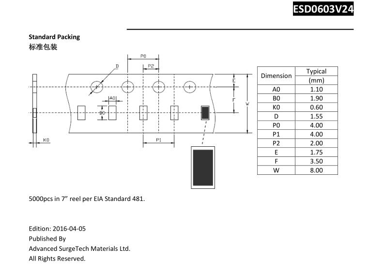 簡述: Base on Polymer Voltage Variable Material, for ESD protection with ultra-low capacitance. 0603 chip size.