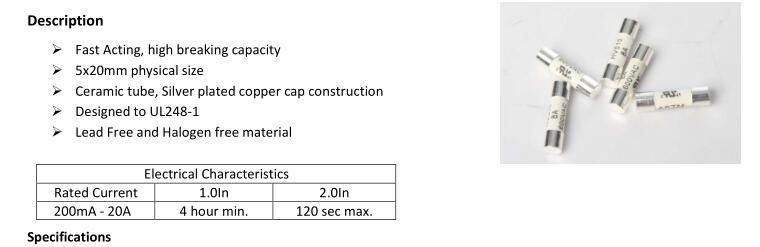 簡述: VOLTAGE RANGE: 600V AC AMPERE RANGE: 100mA ~ 20A INTERRUPTING RATING: 100mA-20A 200A@600Vac