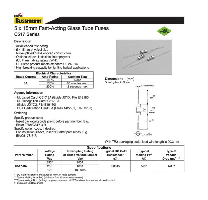 產(chǎn)品名稱: BUSSMANN 保險絲 C517 大量庫存