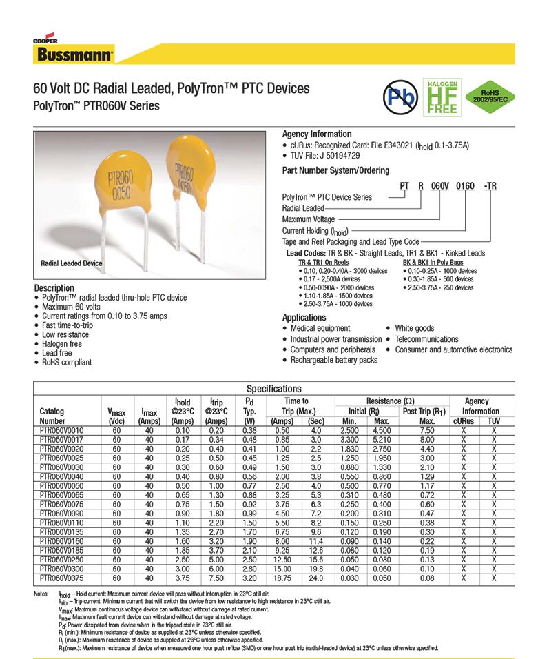 產(chǎn)品名稱: PTR060V0090-TR 可恢復(fù)保險(xiǎn)絲 圓形 插件保險(xiǎn)絲