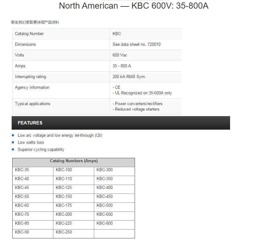產(chǎn)品名稱: North American — KBC 600V: 35-800A