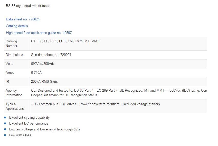 產(chǎn)品名稱: 英標(biāo)BS 88 — 690V: 6-710A快速熔斷器
