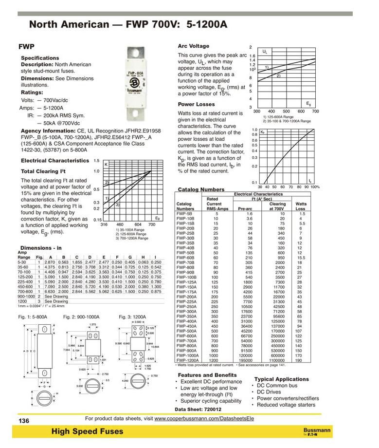 產(chǎn)品名稱(chēng): BUSSMANN FWP-125A 700Vacdc熔斷器