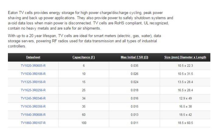 產(chǎn)品名稱: BUSSMANN TV系列超級電容
