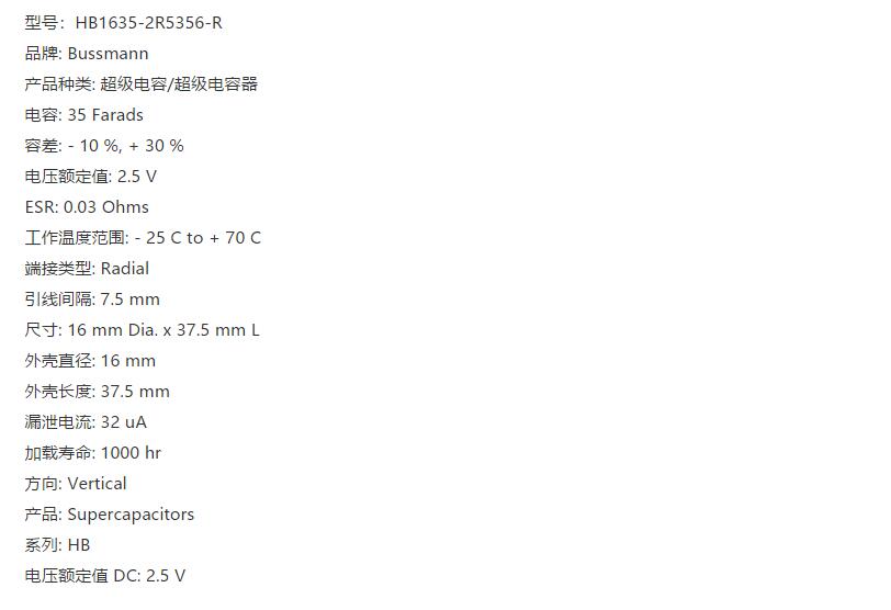 產(chǎn)品名稱: bussmann HB1635-2R5356-R超級電容
