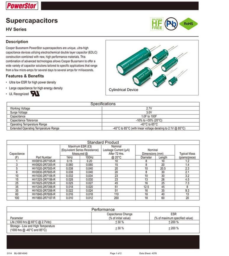 產(chǎn)品名稱: BUSSMANN HV0820-2R7305-R超級(jí)電容
