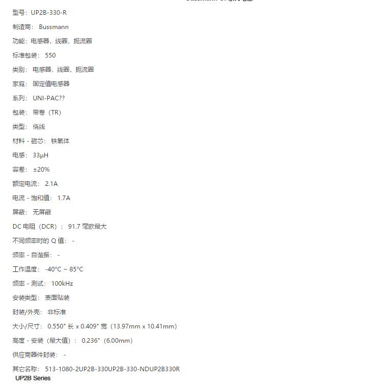 產(chǎn)品名稱: bussmann UP2B-330-R電感