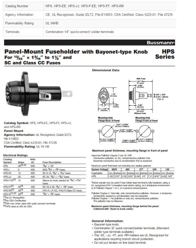 產(chǎn)品名稱(chēng): BUSSMANN HPS保險(xiǎn)絲座