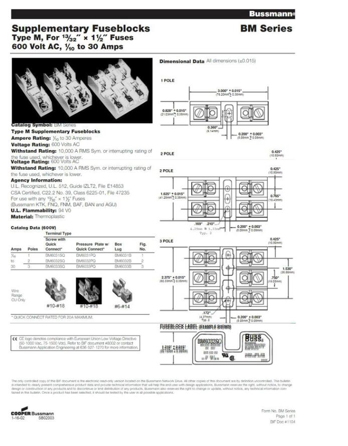 產(chǎn)品名稱: BUSSMANN BM系列熔斷器座