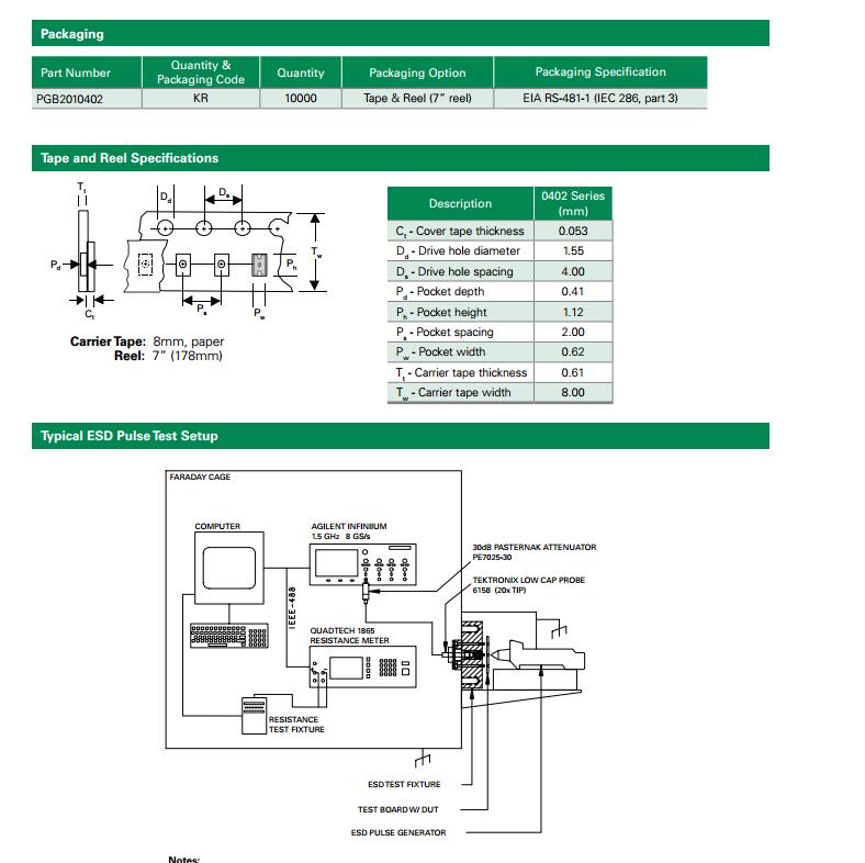 產(chǎn)品名稱: PGB20402 系列 - 0402無鉛表面貼裝型聚合物ESD抑制器