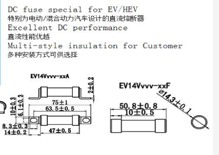 簡述: DC fuse special for EV/HEV 特別為電動/混合動力汽車設計的直流熔斷器