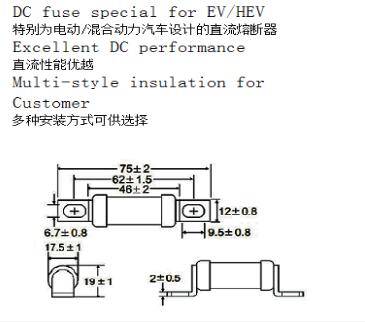 簡述: DC fuse special for EV/HEV 特別為電動/混合動力汽車設計的直流熔斷器