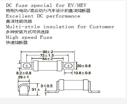 簡述: DC fuse special for EV/HEV 特別為電動/混合動力汽車設(shè)計(jì)的直流熔斷器