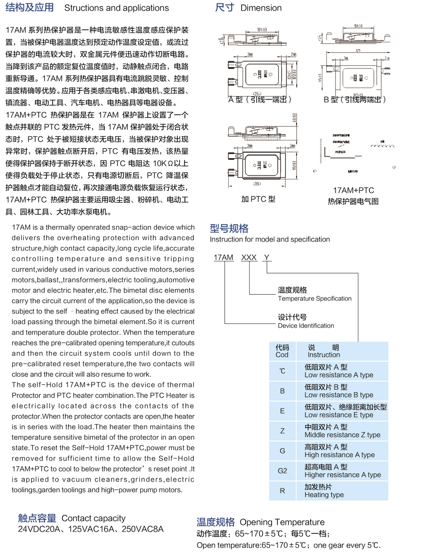 產(chǎn)品名稱: 17AM系溫控器 17AM series thermal protector