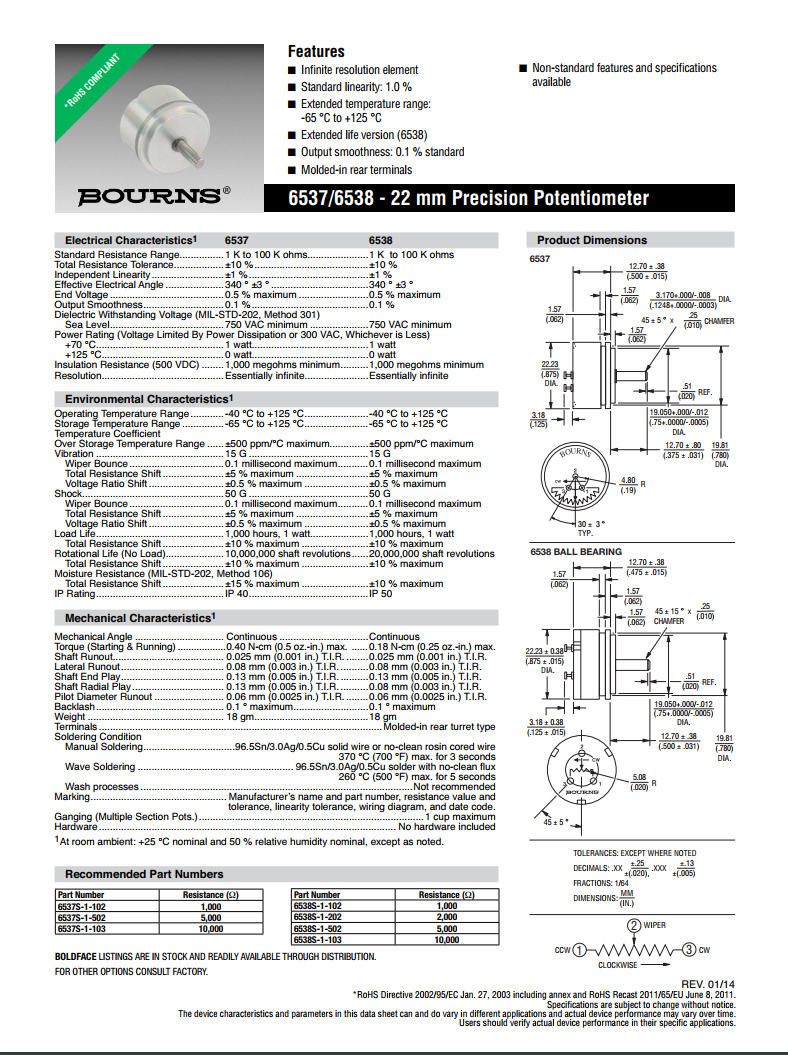產品名稱: BOURNS單轉型精密電位器6537/6538