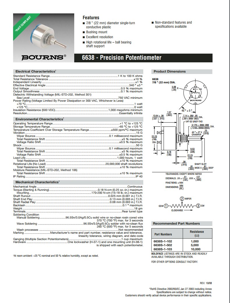 簡(jiǎn)述: BOURNS單轉(zhuǎn)型精密電位器6638