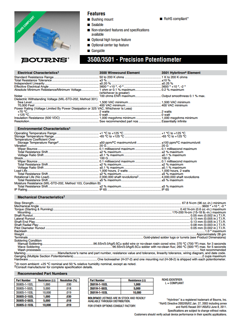 簡述: BOURNS多轉(zhuǎn)型精密電位器3500/3501