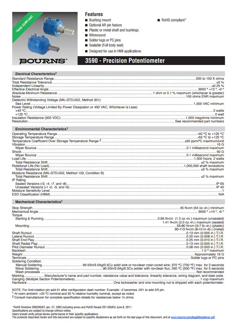 簡(jiǎn)述: BOURNS多轉(zhuǎn)型精密電位器3590