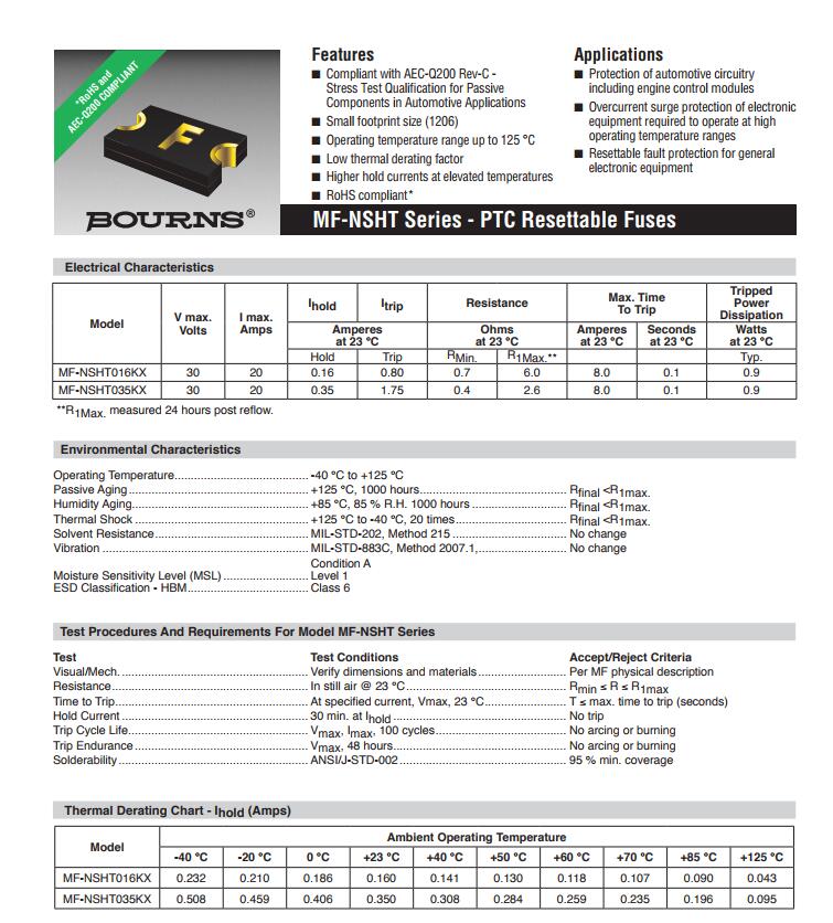 產(chǎn)品名稱: BOURNS 車規(guī)保險絲 MF-NSHT AEC-Q200認(rèn)證