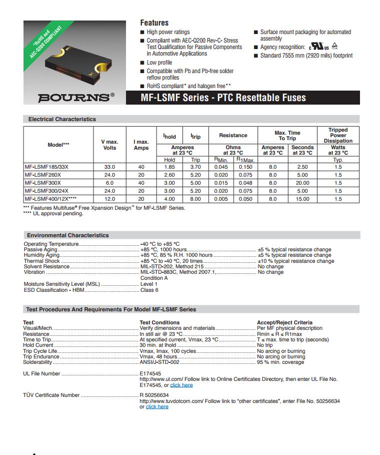 產(chǎn)品名稱(chēng): BOURNS 車(chē)規(guī)保險(xiǎn)絲 MF-LSMF AEC-Q200認(rèn)證