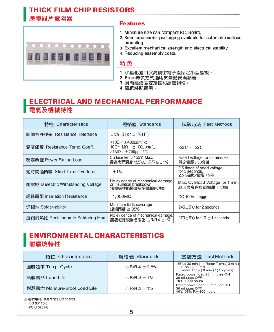 產(chǎn)品名稱: RMC 厚膜晶片電阻器