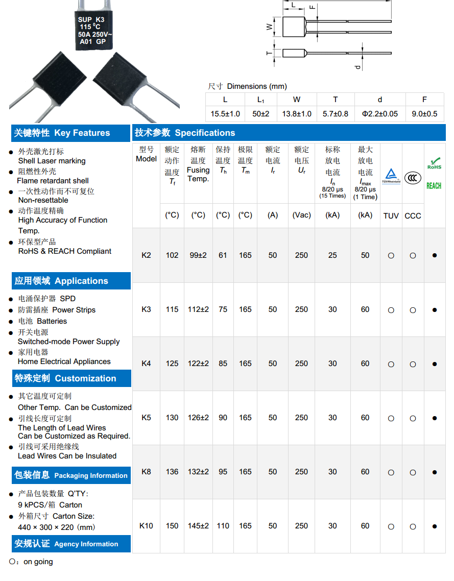 產品名稱: 50A方形溫度保險絲
