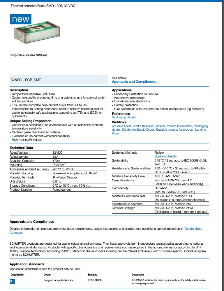 產(chǎn)品名稱: USN 1206 貼片溫度保險絲