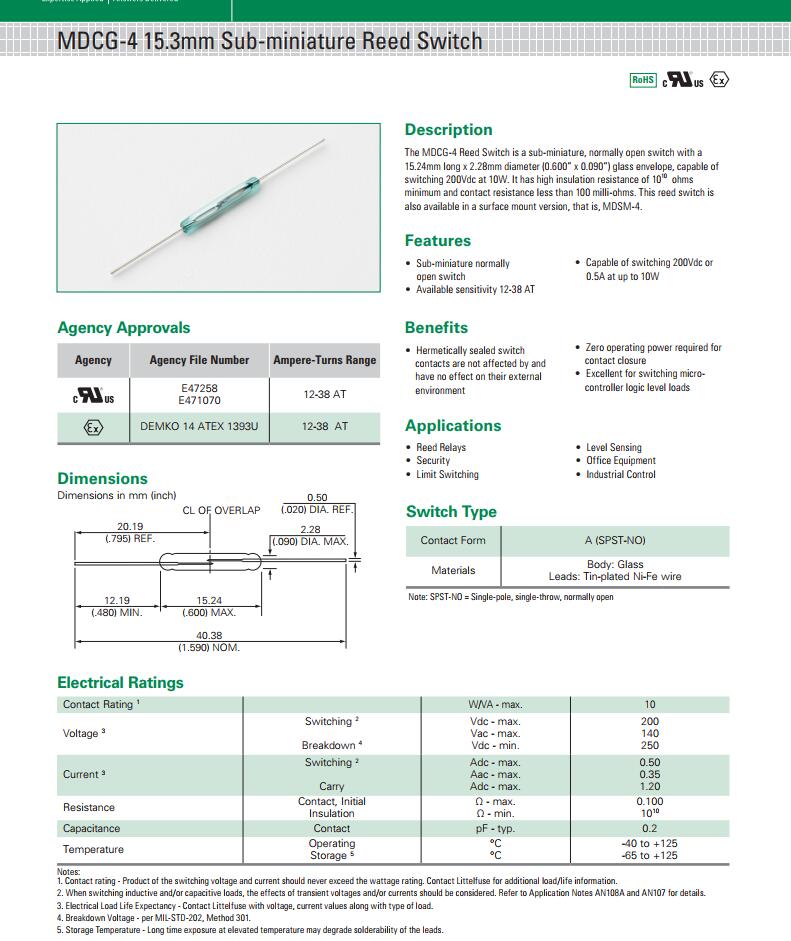 簡(jiǎn)述: MDCG-4 系列 - 15.3mm磁簧開(kāi)關(guān)|HAMLIN|干簧管