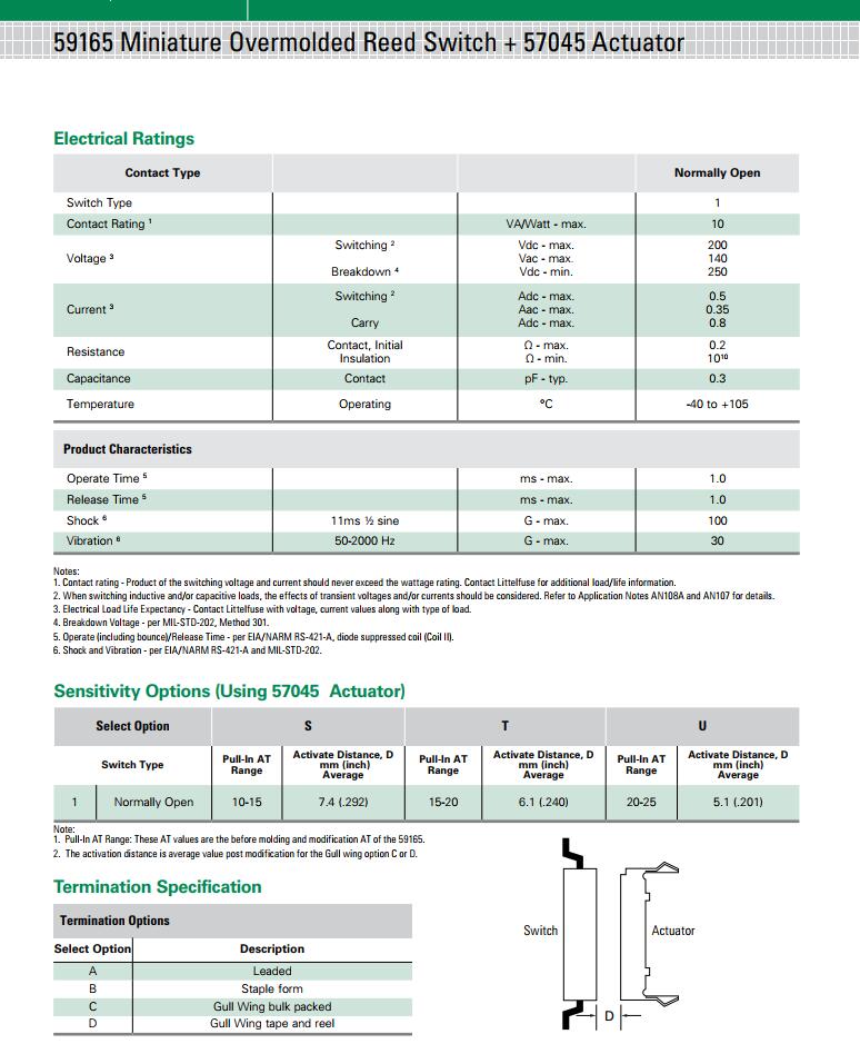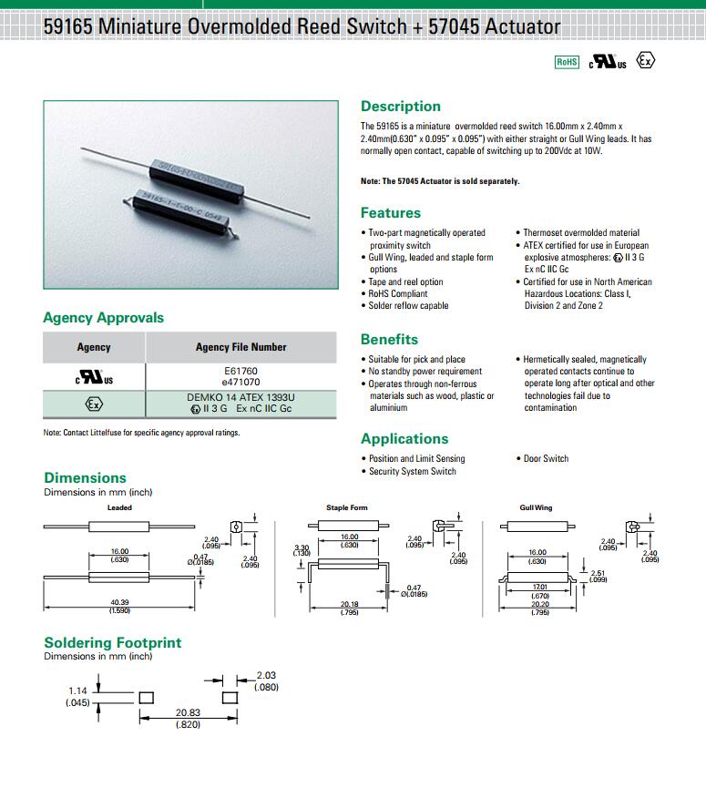簡(jiǎn)述: 59165 系列 - 微型包覆成型磁簧開(kāi)關(guān)|HAMLIN|干簧管