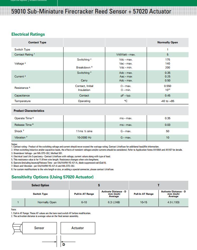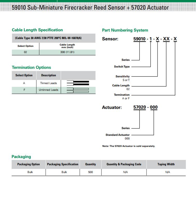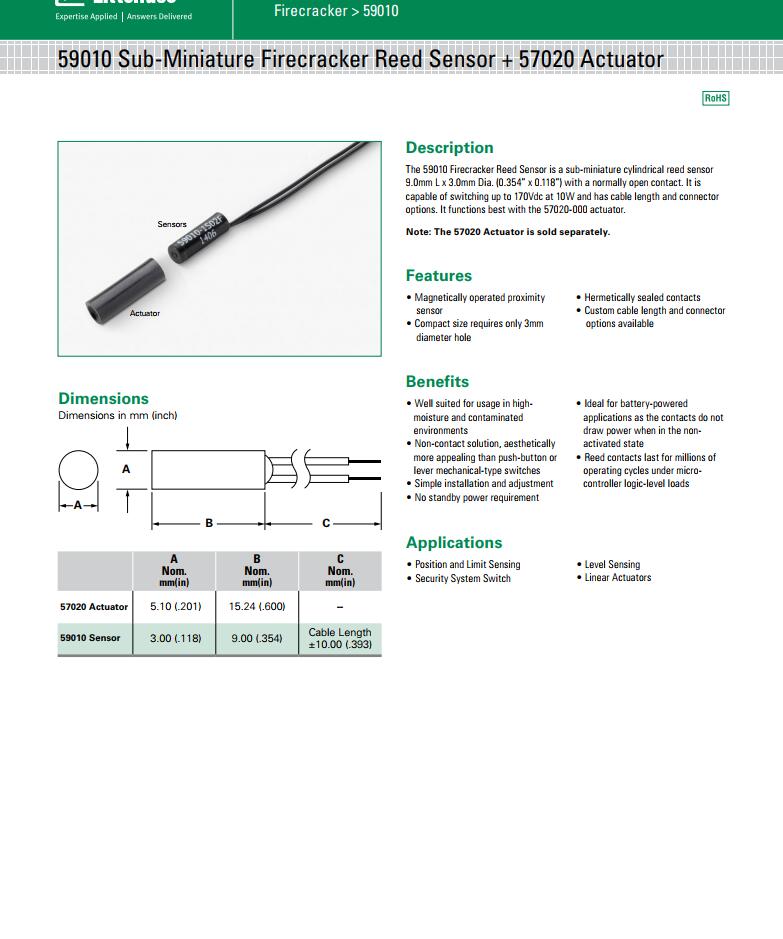 產(chǎn)品名稱: 59010 系列 - 超小型Firecracker磁簧傳感器