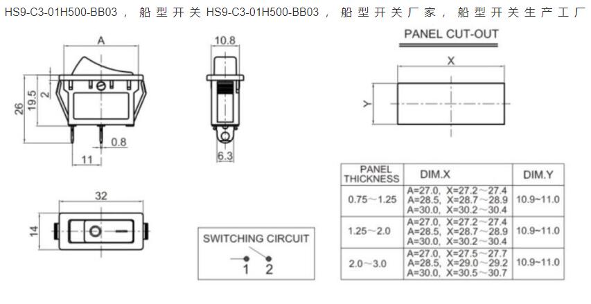 產(chǎn)品名稱: 船型開關(guān)HS9-C3-01H500-BB03