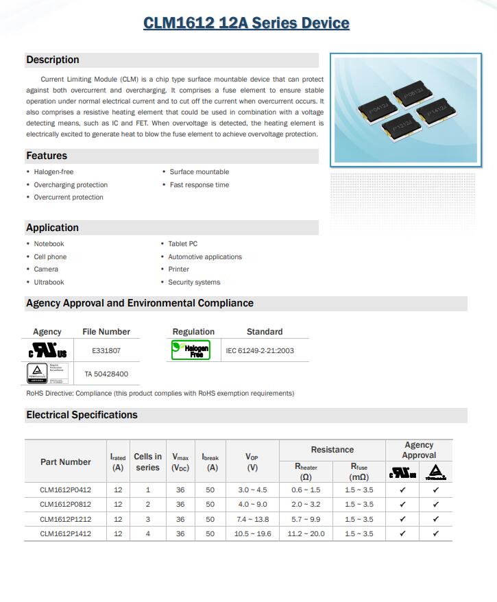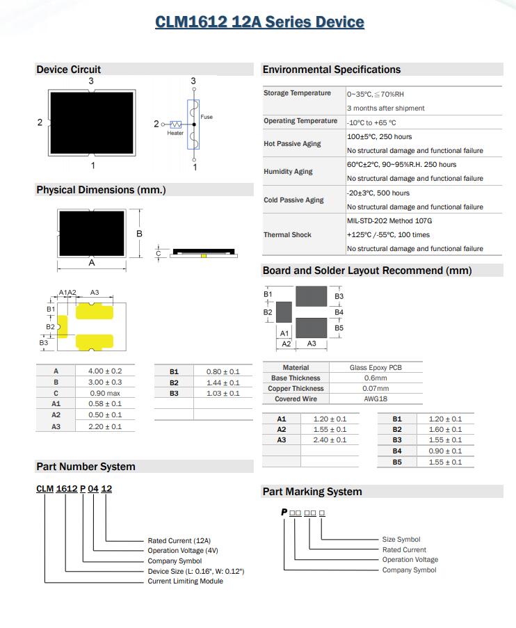 產(chǎn)品名稱: CLM1612 12A Series Device 三端保險(xiǎn)絲