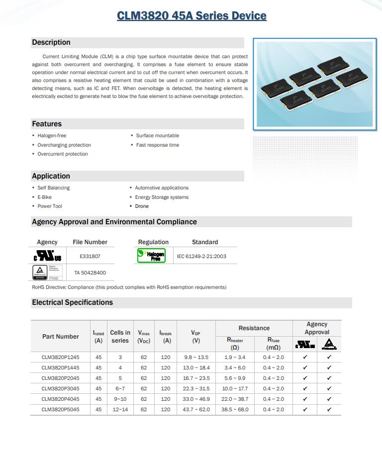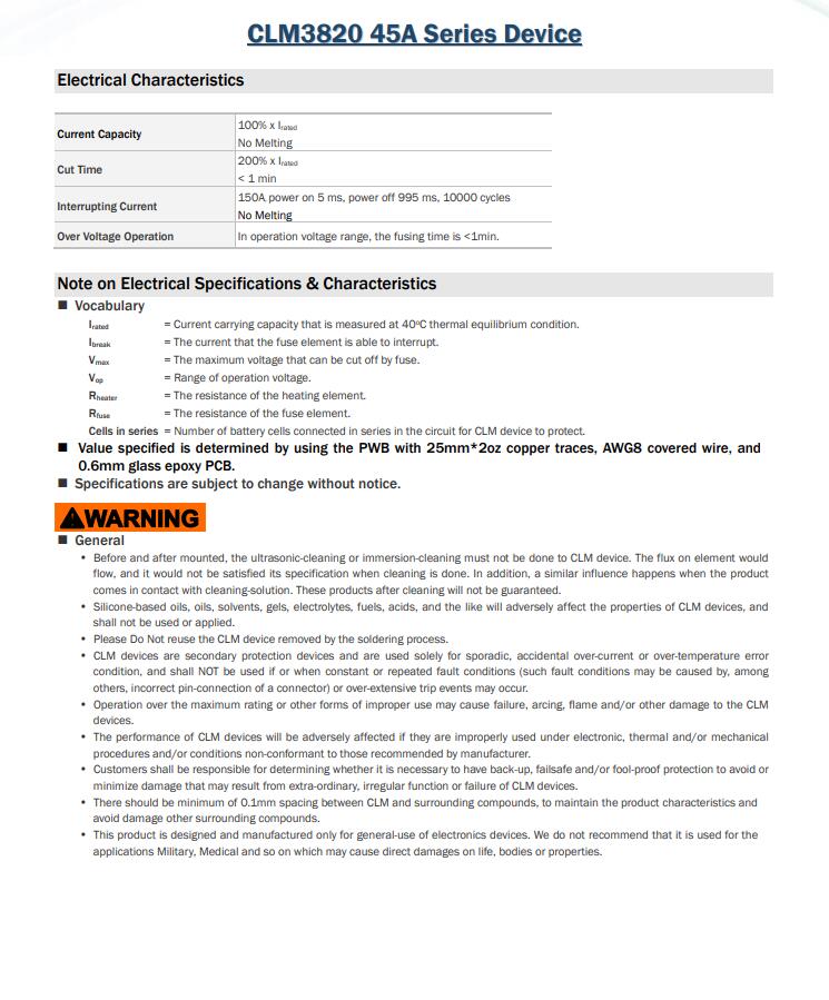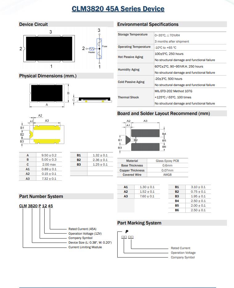 產(chǎn)品名稱: CLM3820 45A Series Device 三端保險(xiǎn)絲