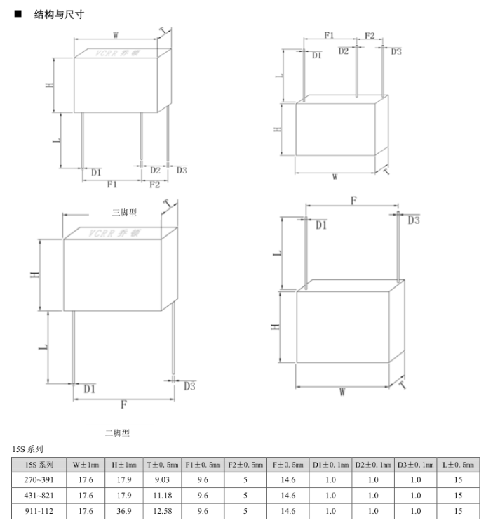簡述: TBMOV15S系列 ?壓敏電壓從(200V-1800V) ?符合RoHS,Reach標準,無鉛 ?專利的集成熱保護裝置 - ?旨在促進符合UL1449第3版SPD產(chǎn)品 ?高峰值浪涌電流額定值高達10kA ?波可焊 ?標準引線形式和間距選項 ?低泄漏 ?-55°C至+ 85°C的工作溫度范圍 產(chǎn)品通過UL,TUV,CQC認證