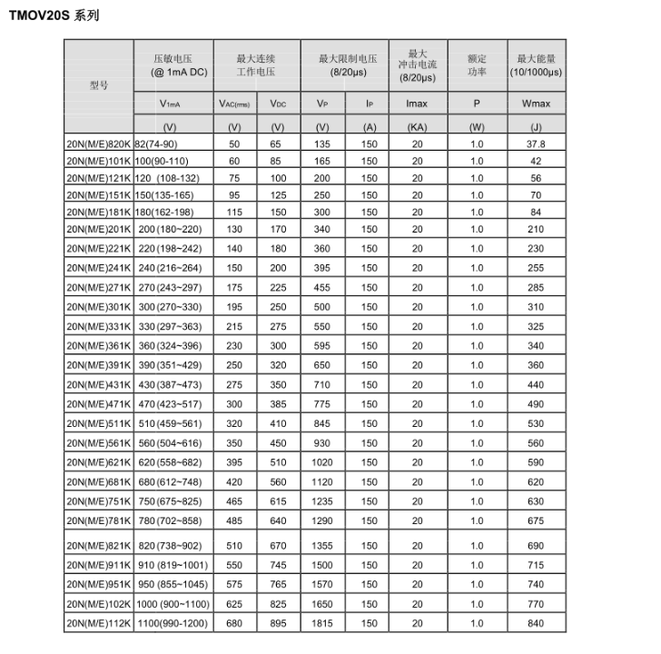產(chǎn)品名稱: TBMOV20S