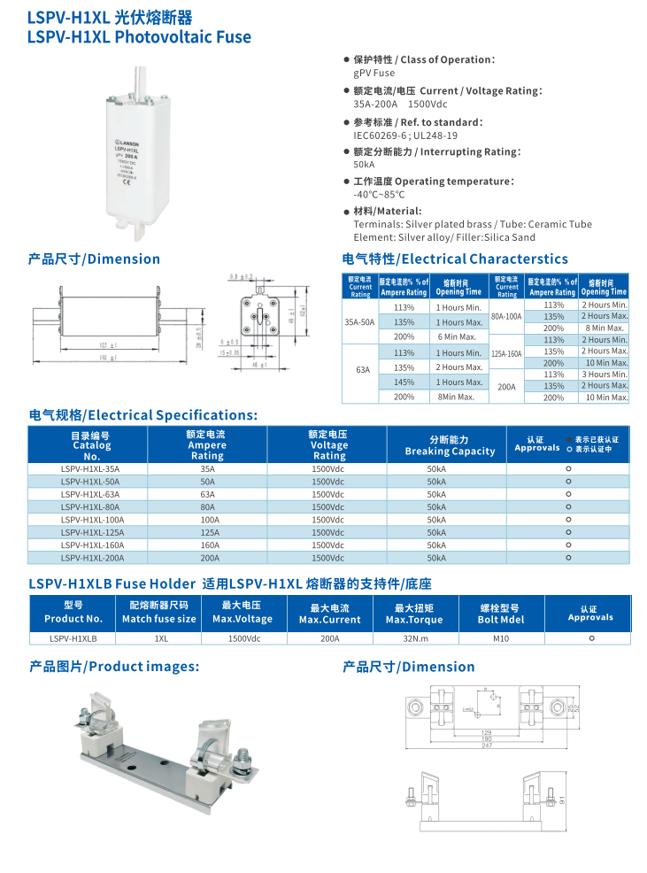 產(chǎn)品名稱: 光伏熔斷器 LSPV-h1xl 1500VDC Photovoltaic Fuse