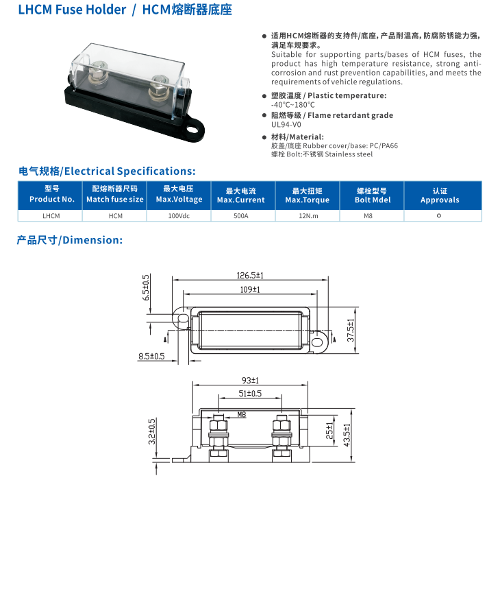產(chǎn)品名稱: 熔斷器底座 LHCM Fuse Holder