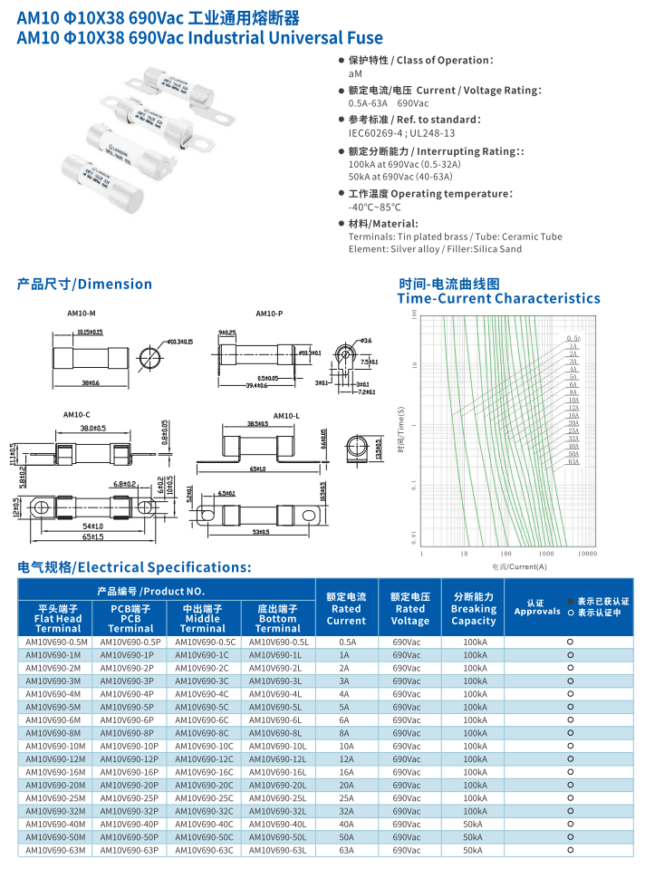 簡(jiǎn)述: 工業(yè)通用熔斷器AM10 10*38 690VAC INDUSTRIAL Universal Fuse